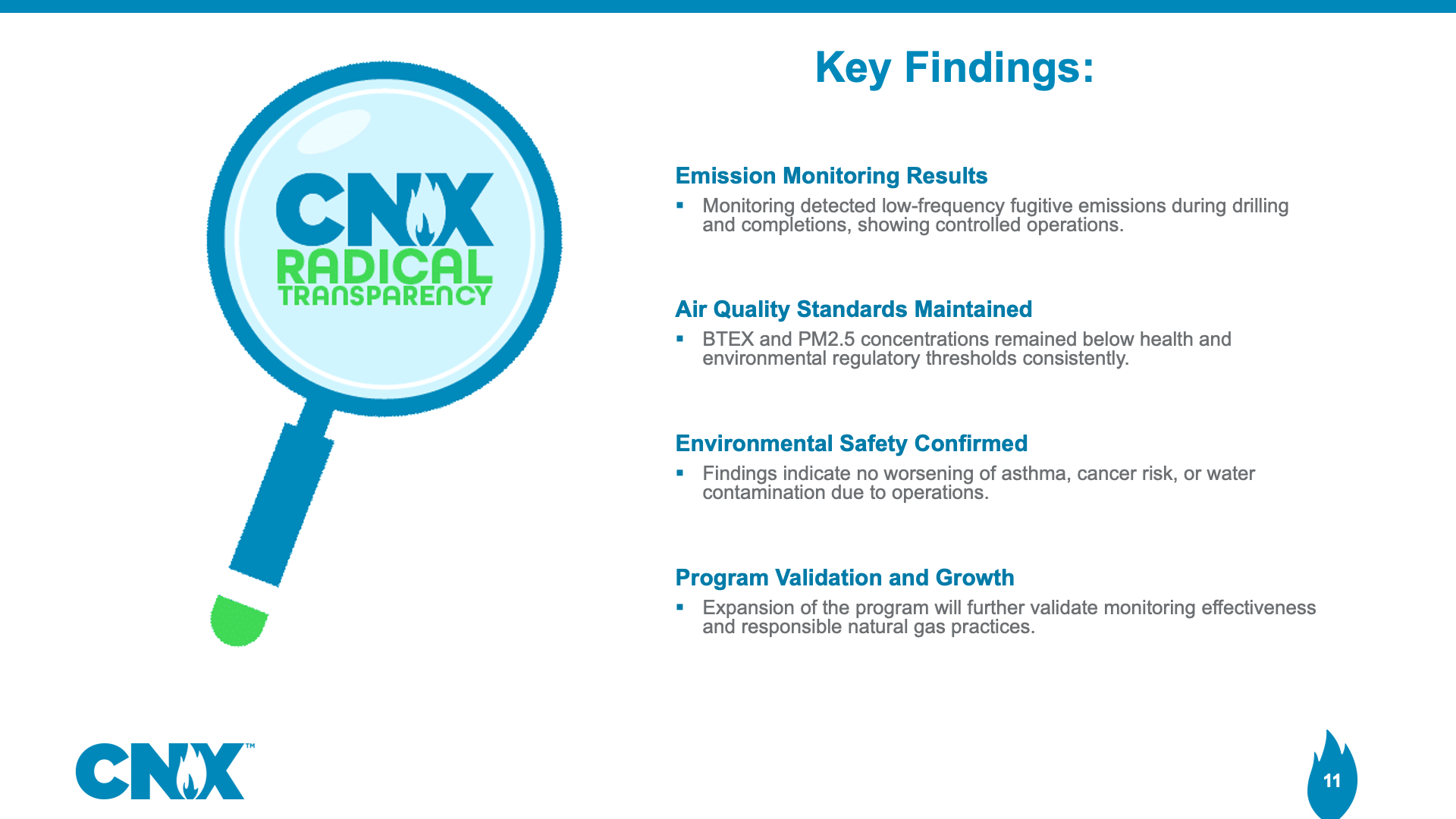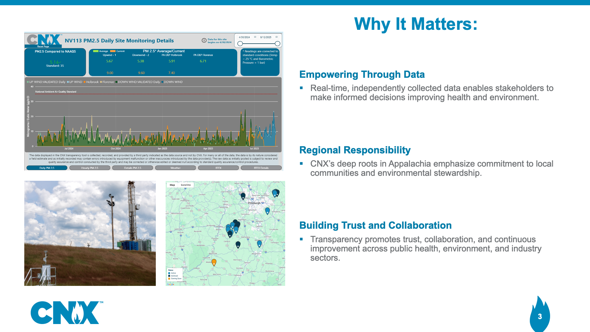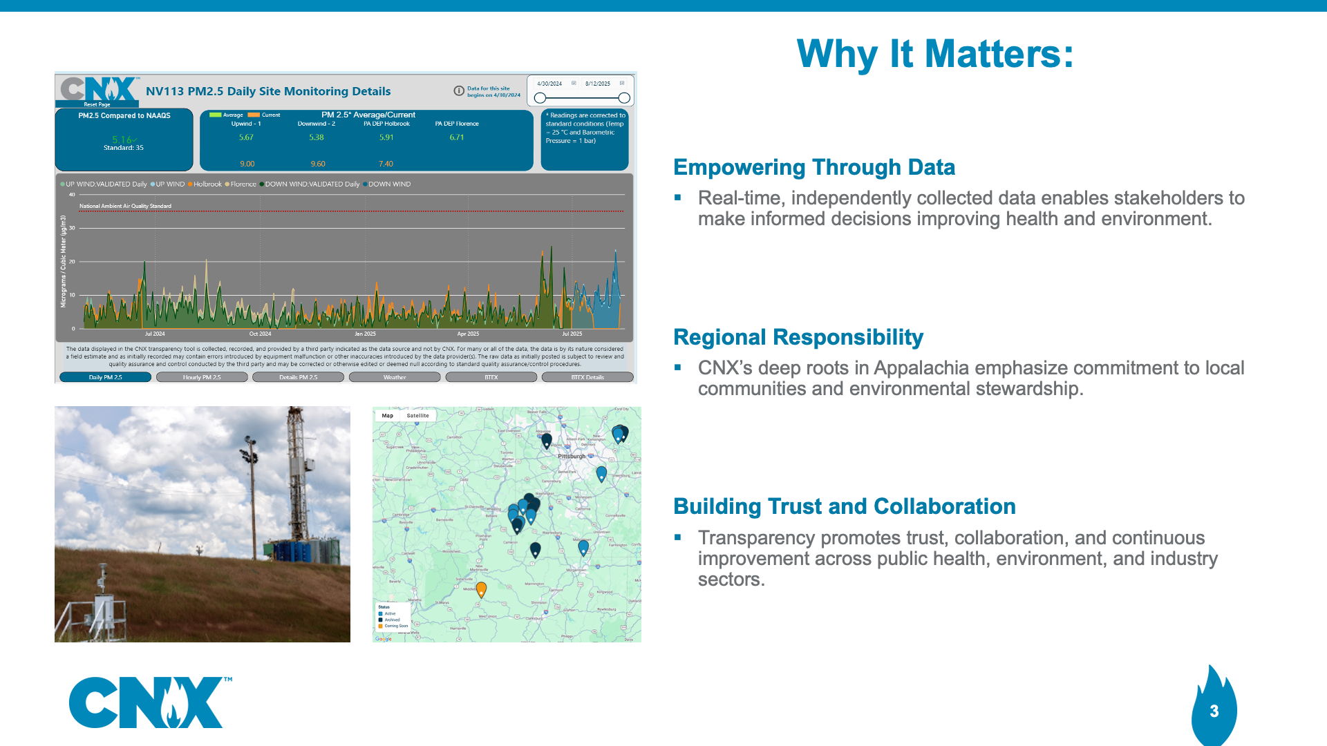 CNX encourages others in the industry to follow our lead, adopt similar approaches, and commends those expanding their own data transparency, including those here with me today. More data means deeper insights and stronger conclusions.